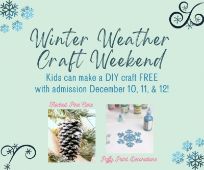 Available all weekend long — Children can create a DYI (Do-It-Yourself) craft in our classroom with adult assistance. Choose a pretty glittery flocked pine cone or a fun puffy paint decoration!