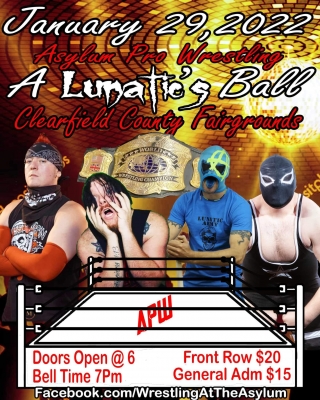 Come check out APW in Clearfield pa on January 29 at 6 expo1 building show starts at 7 doors open at 6 it is on a Saturday tickets r 15 dollars for general 20 for ring side. An its going to be a crazy nite of great hard hitting action. An a lot of crazy fun wrestling plus we r dropping 500 balloons filled with stuff in them. So plz come out an support your favorite wrestler an local boys. see u all there.
