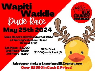Purchase a Duck for the upcoming Wapiti Waddle Duck Race on Saturday, May 25th!