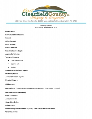 Visit Clearfield County Board Meeting