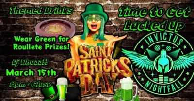 Its TIME TO GET LUCKED UP at our annual Saint Pattys Day Party! Patrons wearing green will get access to the roulette wheel for a chance at prizes from $20-$375 value! Themed Drink specials on deck, Dj Whoaa on the stage, & the best vibes in town. Only at Nightfall!