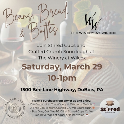 Join us, Stirred Cups and Crafted Crumb Sourdough Saturday March 29th from 10am-1pm!