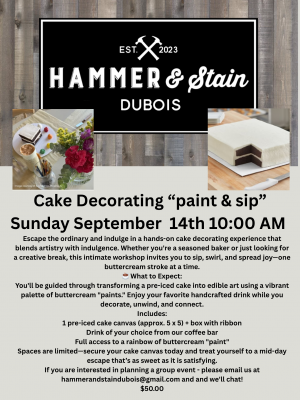 If you are interested in planning a group event - please email us at hammerandstaindubois@gmail.com and and we'll chat!