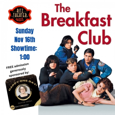 We’re celebrating the 40th Anniversary of this timeless classic with a Free Admission showing of The Breakfast Club! Admission to the movie is sponsored by Dottie Spera of Realty One. Sunday Nov 16th Doors open at 12:30, showtime is 1:00