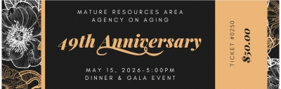 We cordially invite you to join us for the Clearfield County Area Agency on Aging 49th Anniversary Gala to be held Friday, May 15, 2026, at the Copper Cork Event Center.
