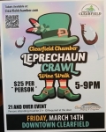 Woo Hoo! Tickets are finally here! Shake off Winter at the Leprechaun Crawl Wine Walk, Friday, March 14th. Get tickets at ClearfieldChamber.com or stop in at the Chamber office. Tickets will also be available this Saturday at the Groundhog Wine Festival