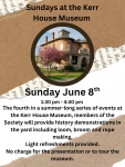 The fourth in a summer-long series of events at the Kerr House Museum, members of the Society will provide history demonstrations in the yard including loom, broom and rope making.