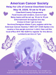 receive a free purple survivor t-shirt; then call the local office 814-762-6204 to register for the dinner.